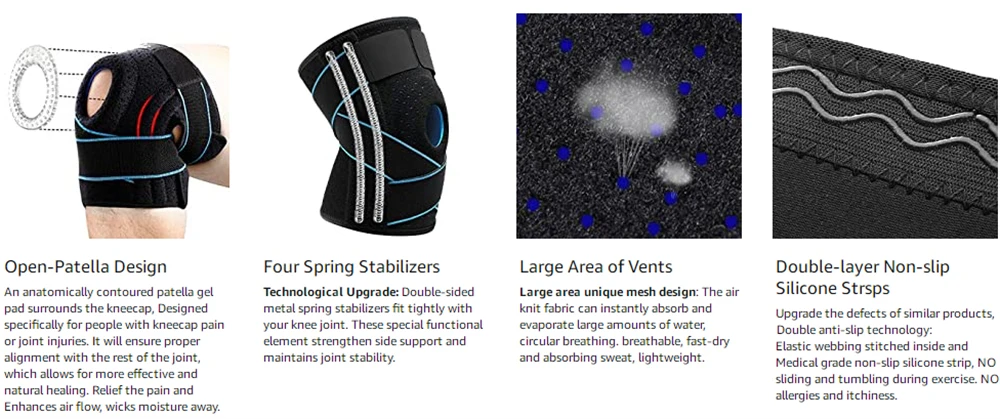 4. Four Spring Stabilizers and Open Patella Design, Professional for Surgery Recovery and Sports Injuries.