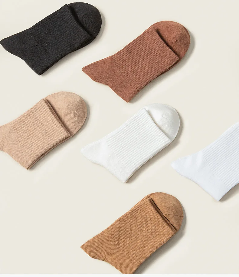 5/6pairs Unisex Casual Plain Color Socks, Fashion Versatile Socks Breathable Comfy Crew Socks Casual Sports Socks For Men Women
