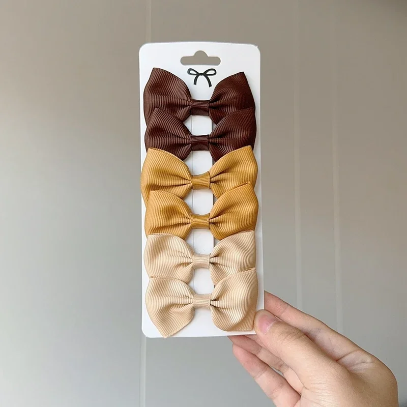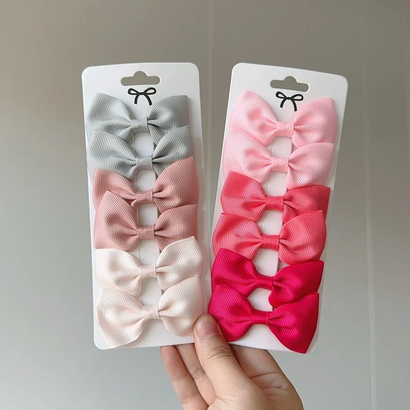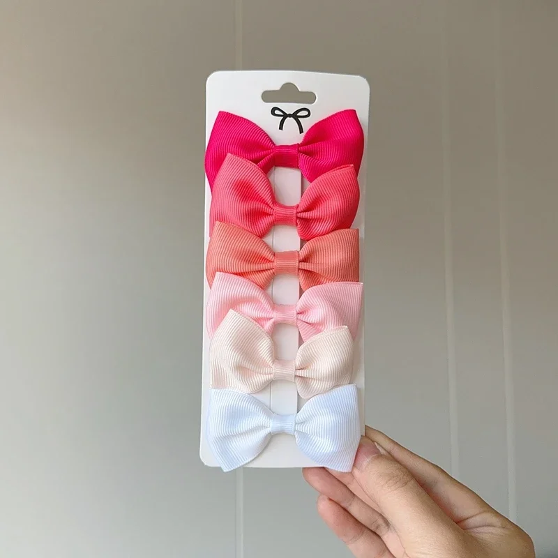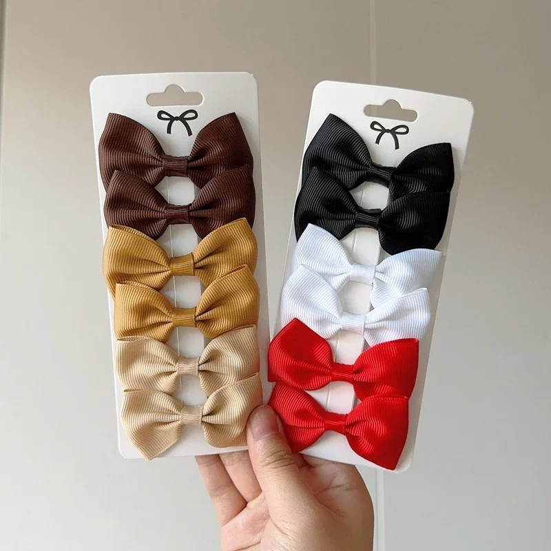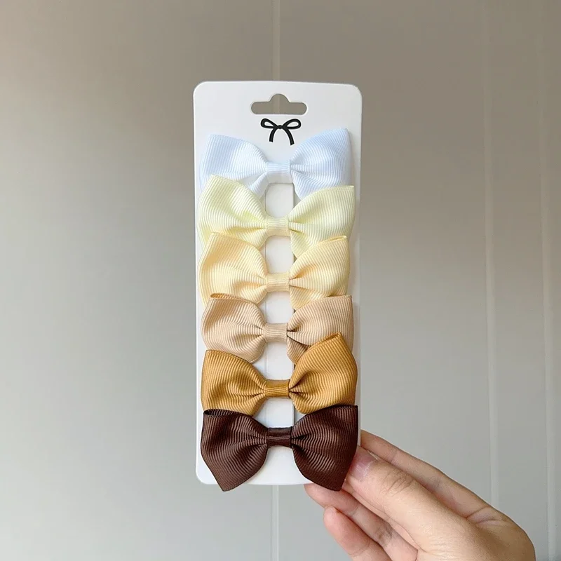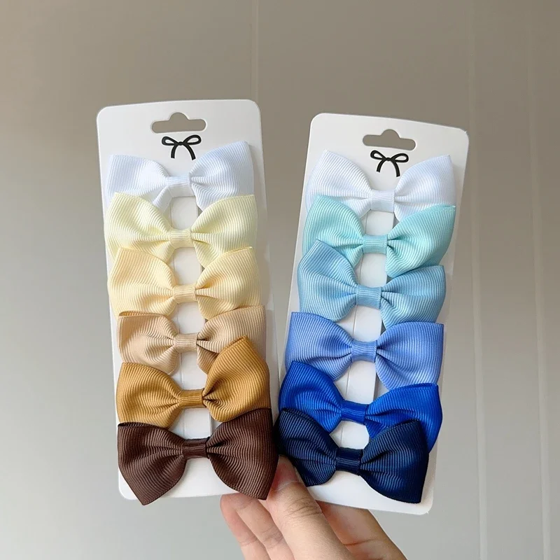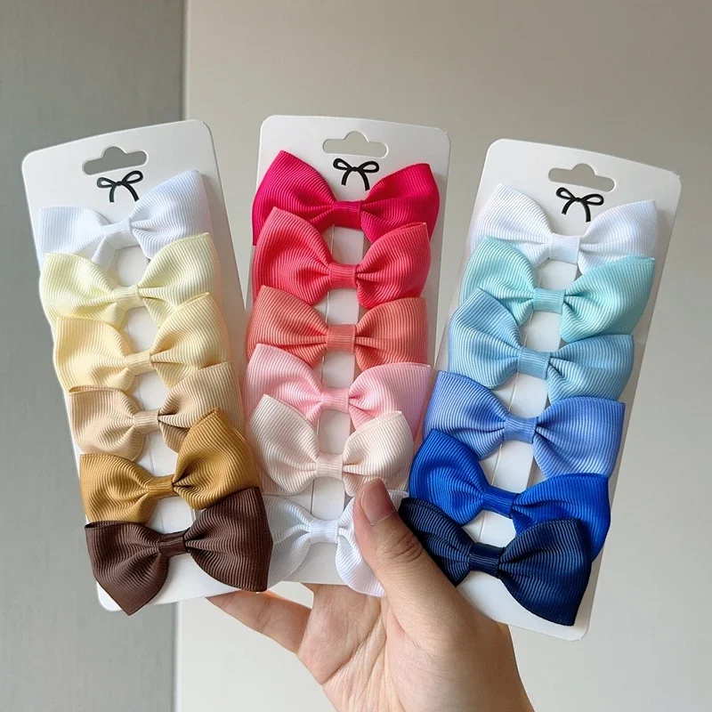 6Pcs Ribbon Bows Hairpin Girl Sweet Solid Design Hairpin Color Block Delicate Hairgripe Barrettes Kawaii Child Accessories