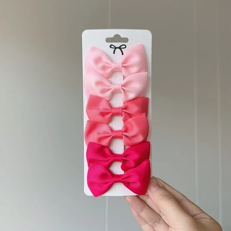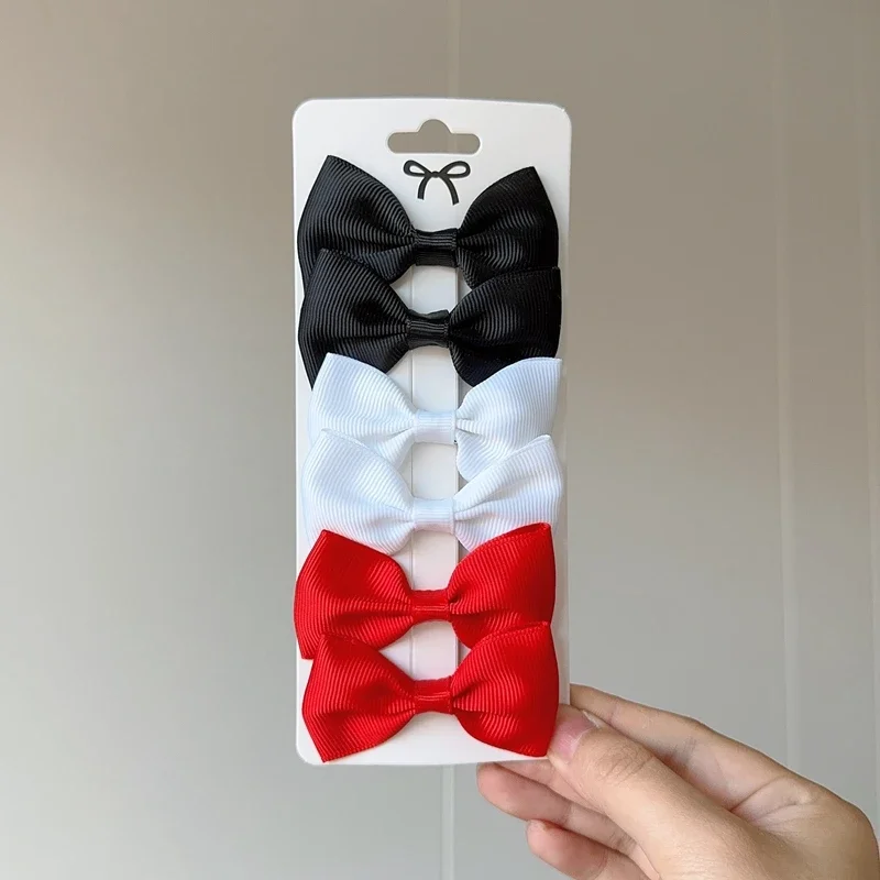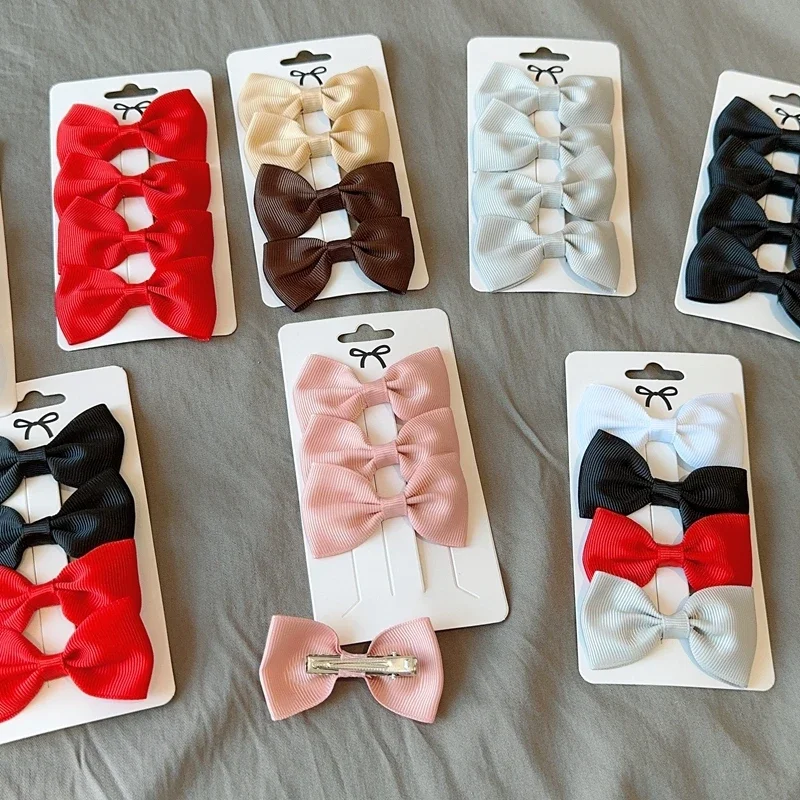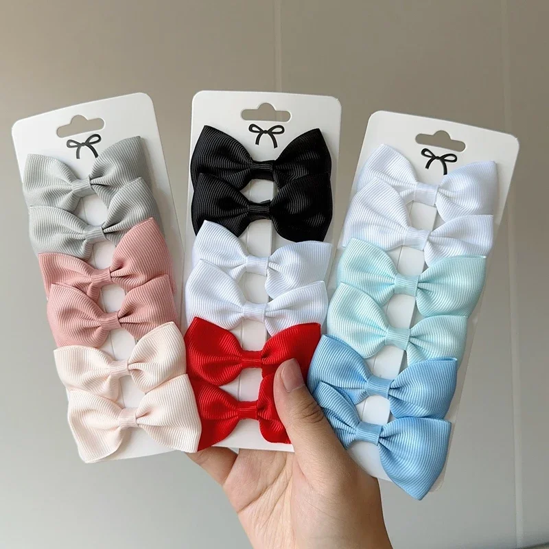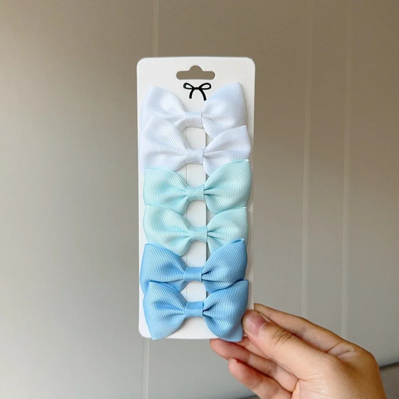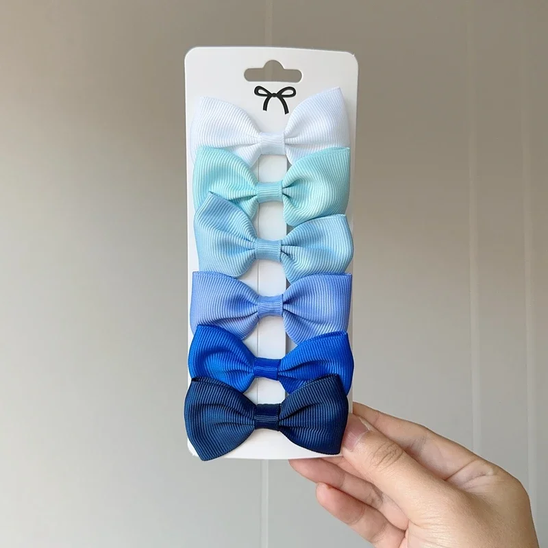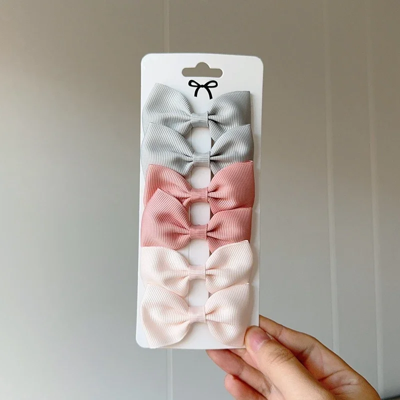 6Pcs Ribbon Bows Hairpin Girl Sweet Solid Design Hairpin Color Block Delicate Hairgripe Barrettes Kawaii Child Accessories