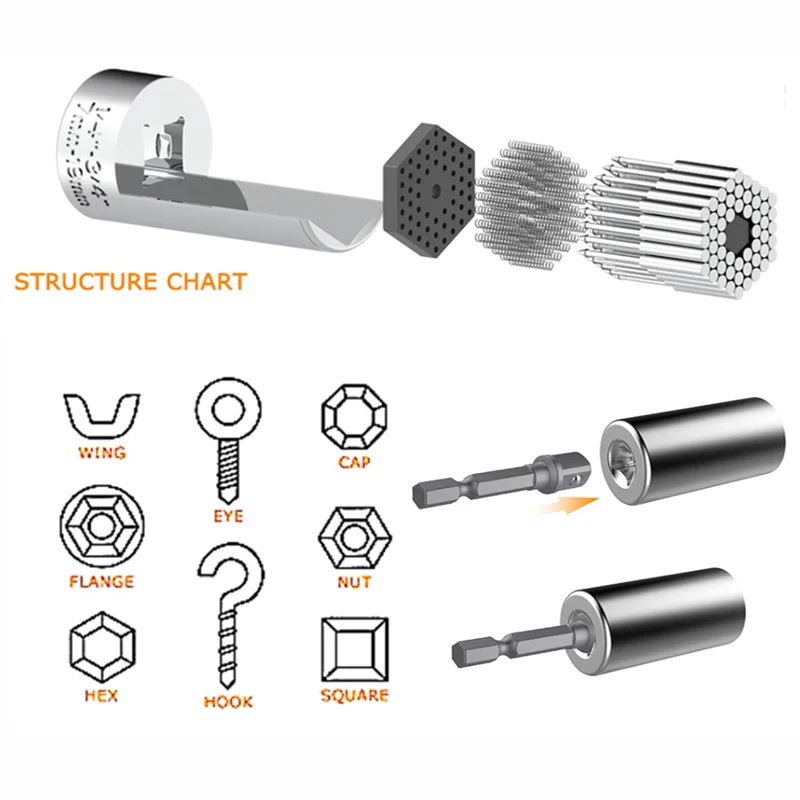 Multifunctional 7 to 19mm Magic Socket Multi Purpose Wrench Extension Rod Electric Hand Drill Screw Tool Set