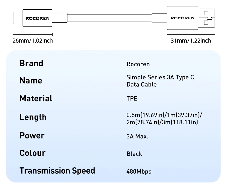 | Product Name | Rocoren 3A USB Type C Mobile Phone Cable |
