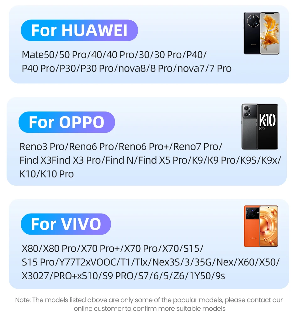 | Compatibility 1 | For Huawei Mate 50 40 Pro P50 P40 P30 Pro Nova 10 9 8 Pro |