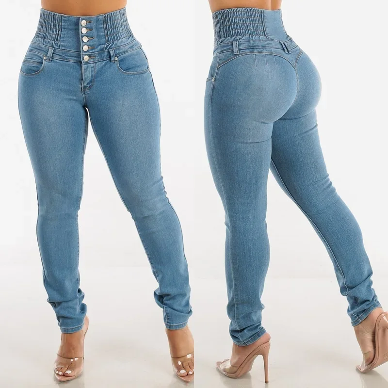 Slim Fit High Waist Elastic Waist Button down Jeans Women’s Spring 2025 Fashion Butt Lifting Long Pants Female Clothing