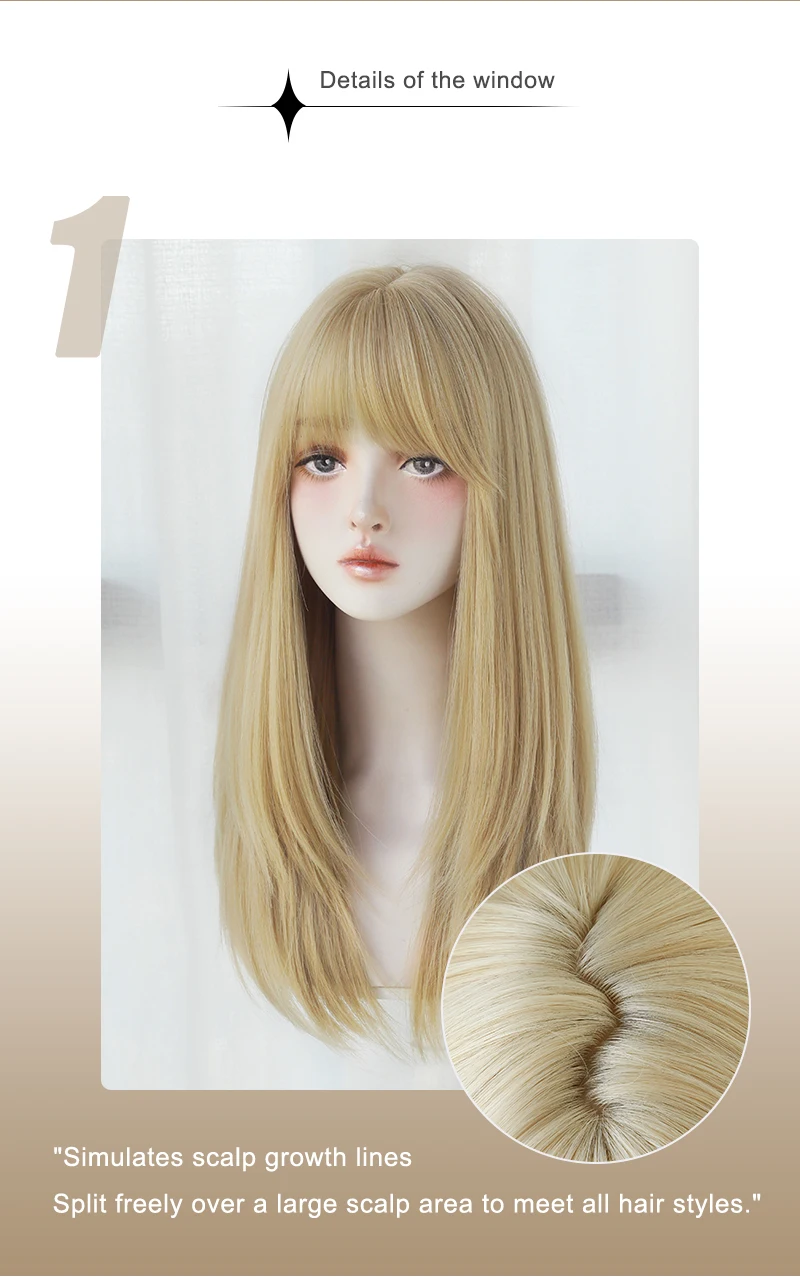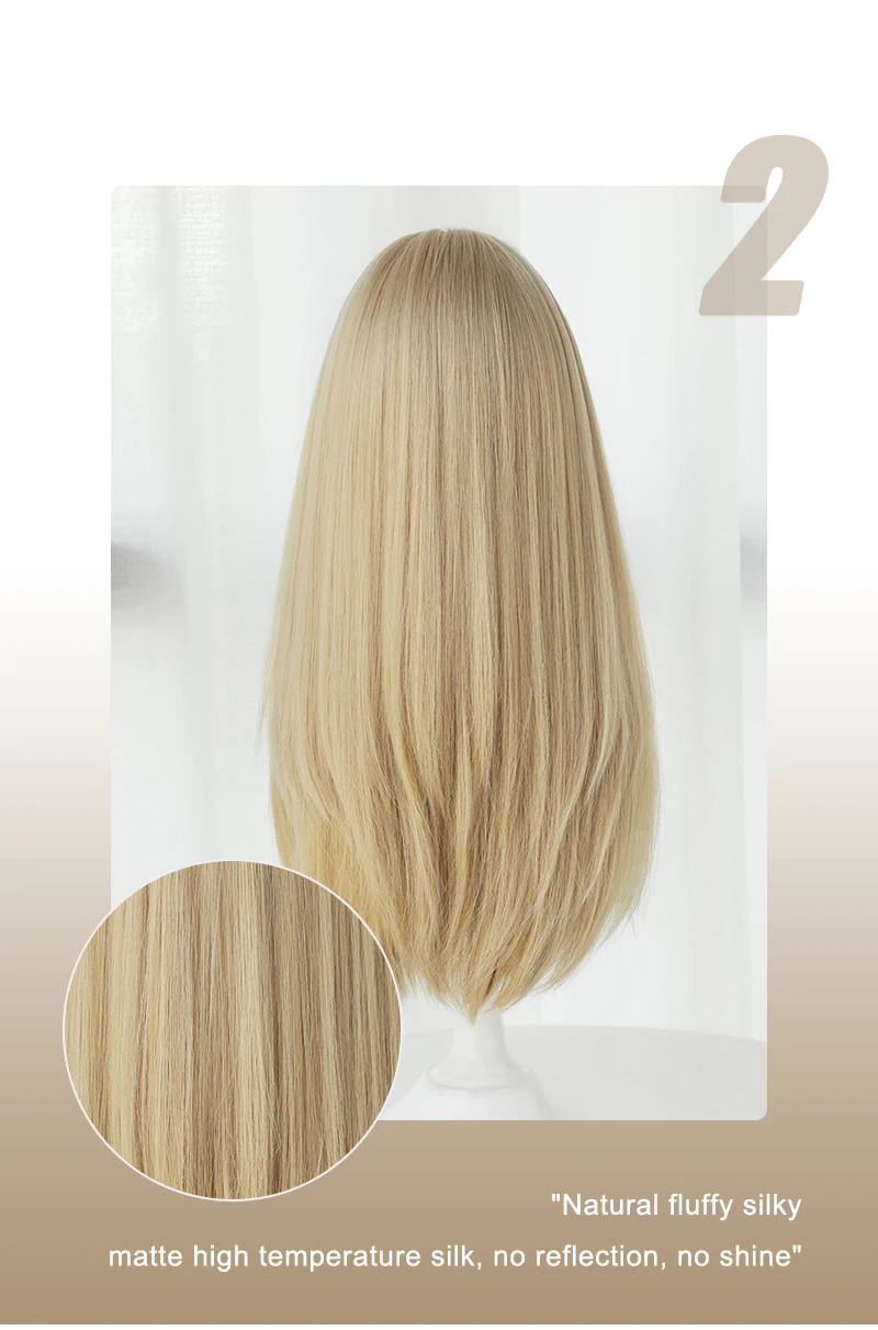 Straight Layered Blonde Wigs with Neat Bangs High Density Synthetic Natural Fake Hair Wig for Women Daily Cosplay Party Wigs