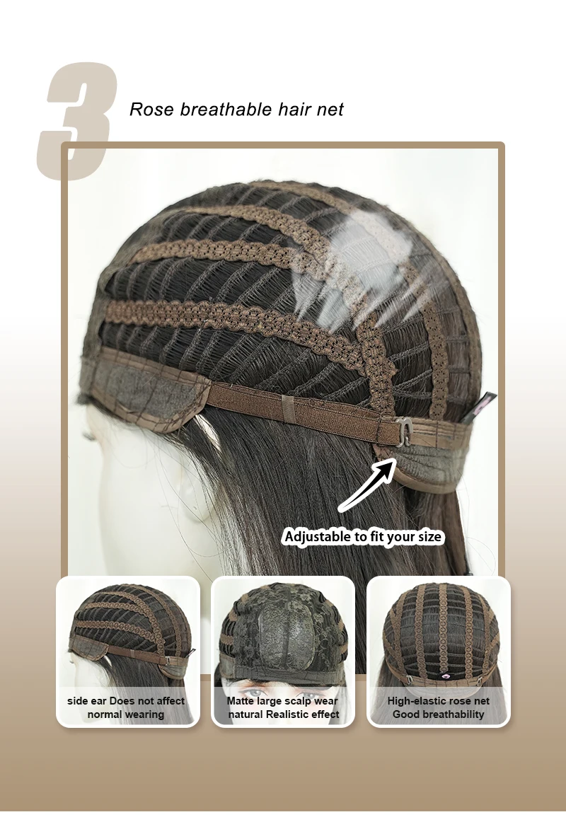 Material: nossa peruca é feita de cabelo sintético de alta qualidade. A cor natural parece real cabelo humano. É macio, amigável à pele, macio e confortável.