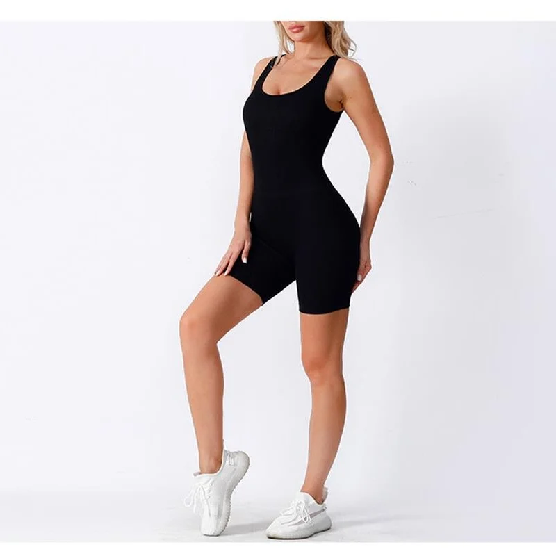 Summer Women Seamless Knit One-piece Yoga Suit Square Collar Jumpsuit Thread Sexy Go out Hip Lift Slim Shorts Jumpsuit