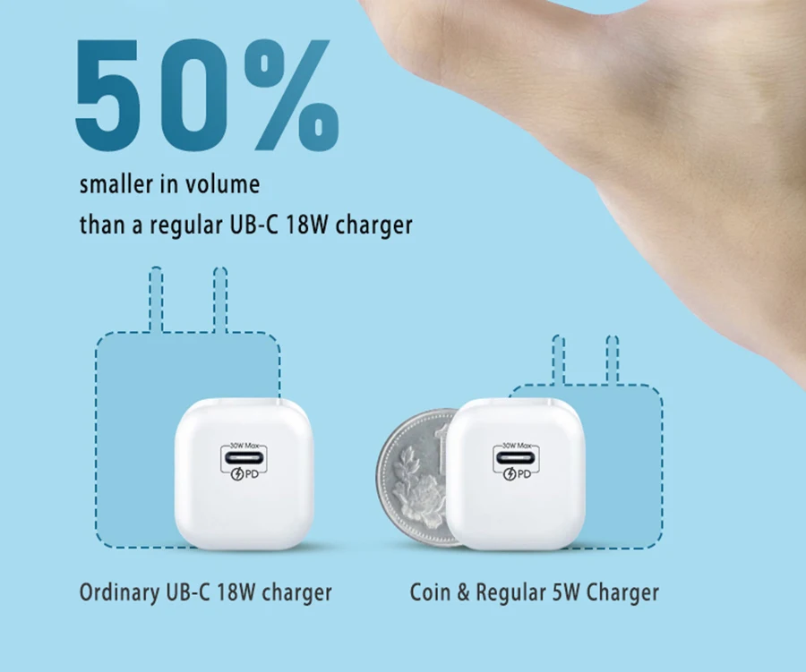 Easy to carry and does not take up space,50% reduction in volume compared to a regular 18W charger