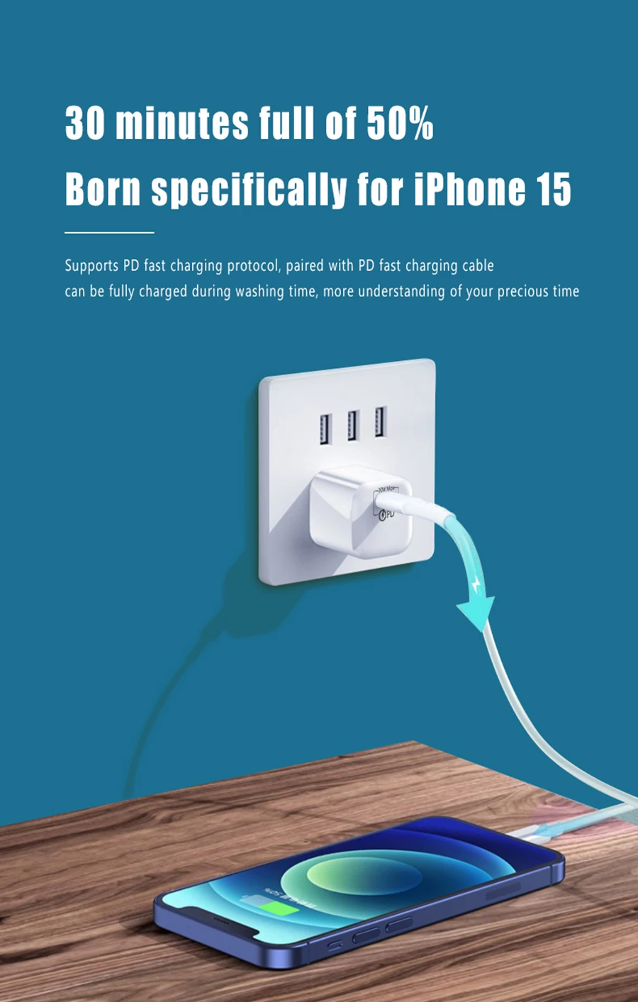 IPhone 15 can charge up to 50% in 30 minutes,Save 1/3 of time compared to regular chargers