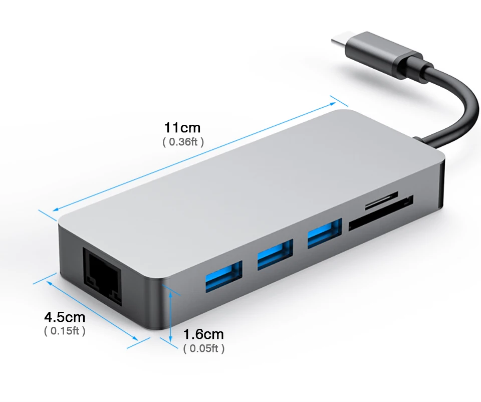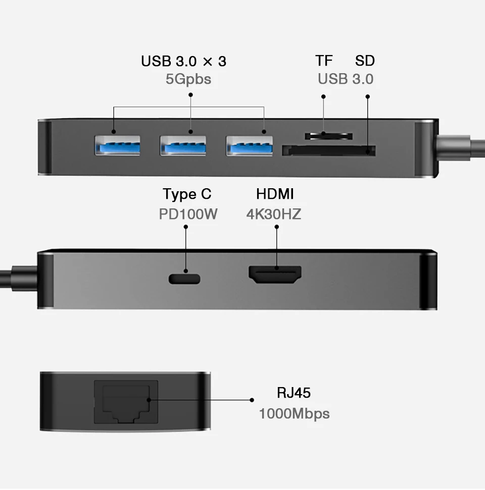 c to rj45 Gigabit,HDMI 4k@30hz,usb3.0,PD 100w fast charge,sd,tf Card Reader